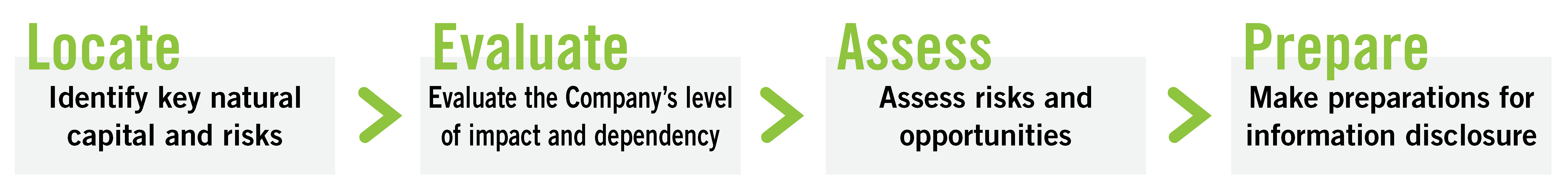 It is recognized that companies’ economic activities are dependent on natural capital such as air, water, forests, and minerals, that companies are at risk of impacting the natural world in various ways, and that maintaining biodiversity is essential not only for its own sake but for the continuation of business. DOWA’s manufacturing operations are centered on non-ferrous metals and, with the exception of water, do not use biological resources as major raw materials. In preparation for disclosure based on the TNFD framework, we have adopted the LEAP approach advocated by the TNFD and have begun assessing the environmental risks and nature-related impacts of our business. In fiscal 2024, we carried out scoping, considered various factors (interfaces) in our business’s environmental management and land use that affect natural capital, and identified items that are particularly relevant to our Company.