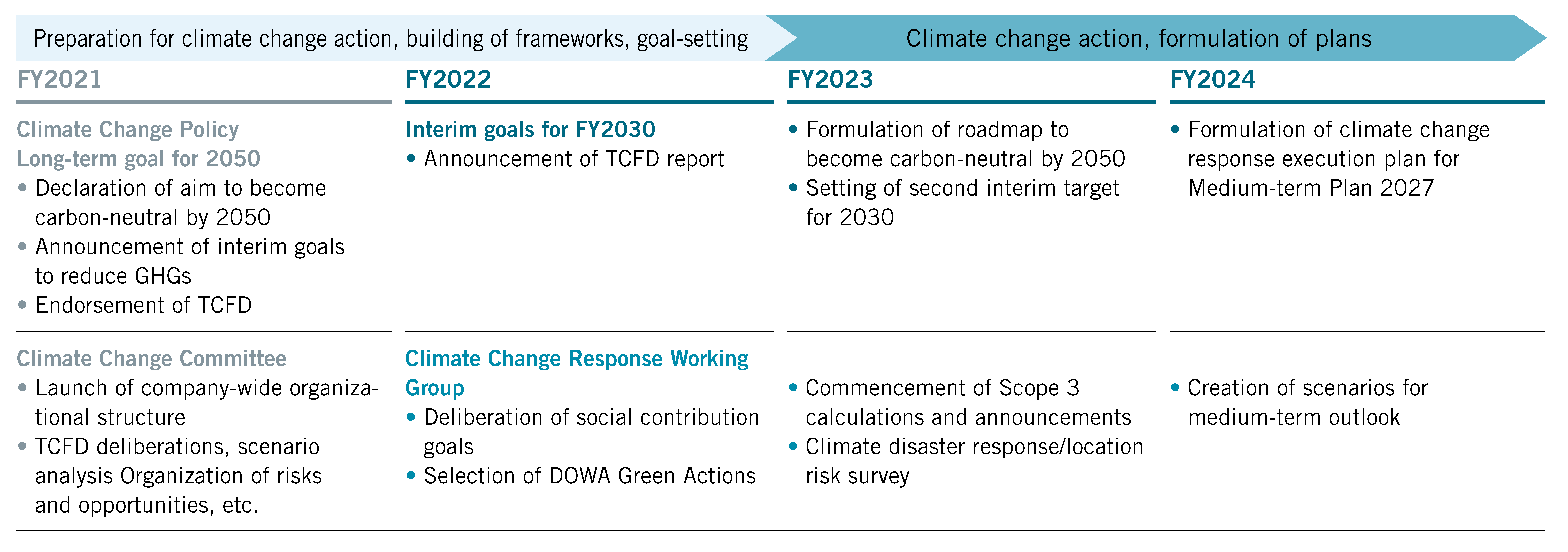 - Publication of TCFD Report - Create a roadmap for climate change response |