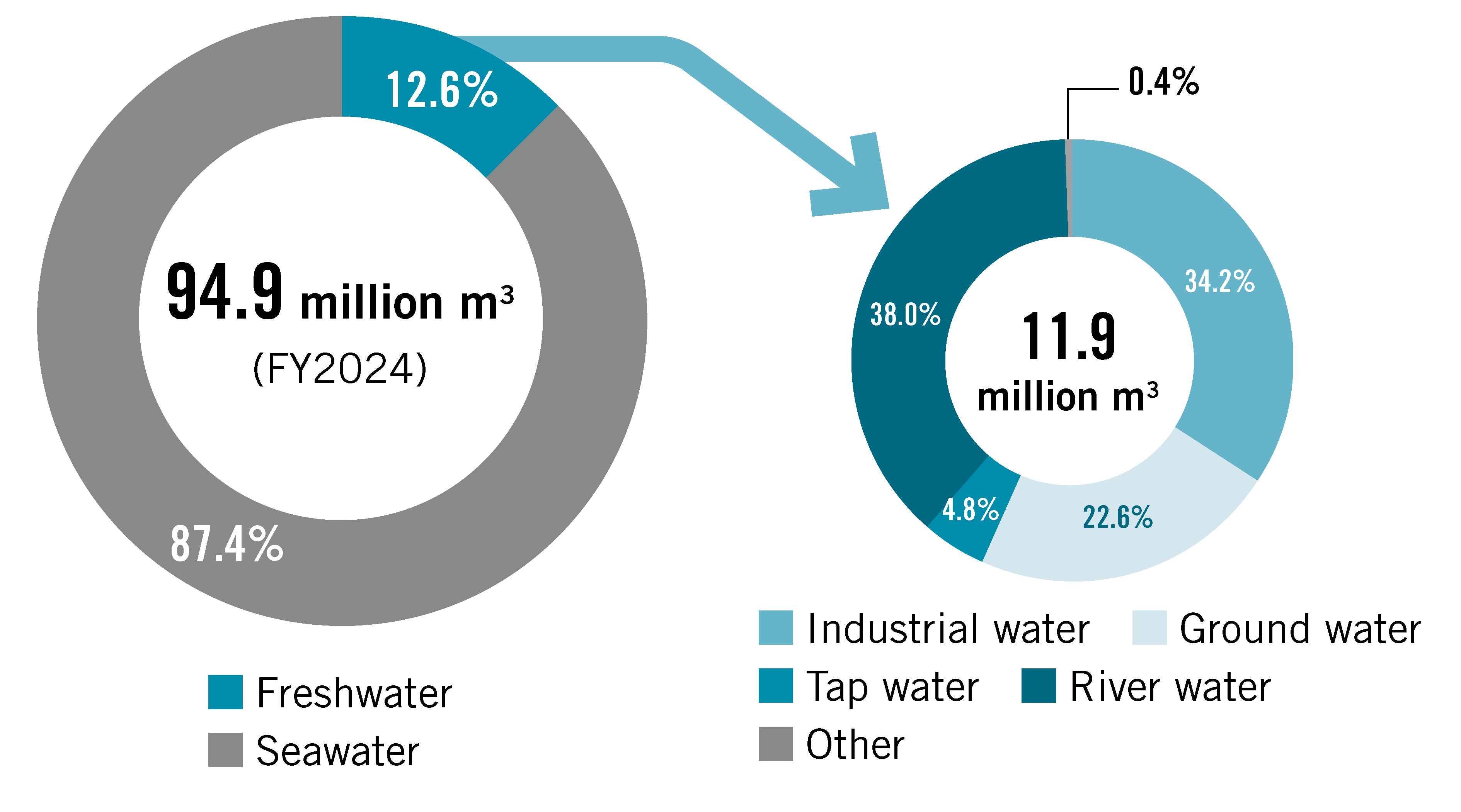 The amount of raw materials used in FY2024 was 939 thousand tons, representing a decrease of approximately 1.4% from the previous fiscal year. Of this total, about 19% consisted of recycled raw materials.
