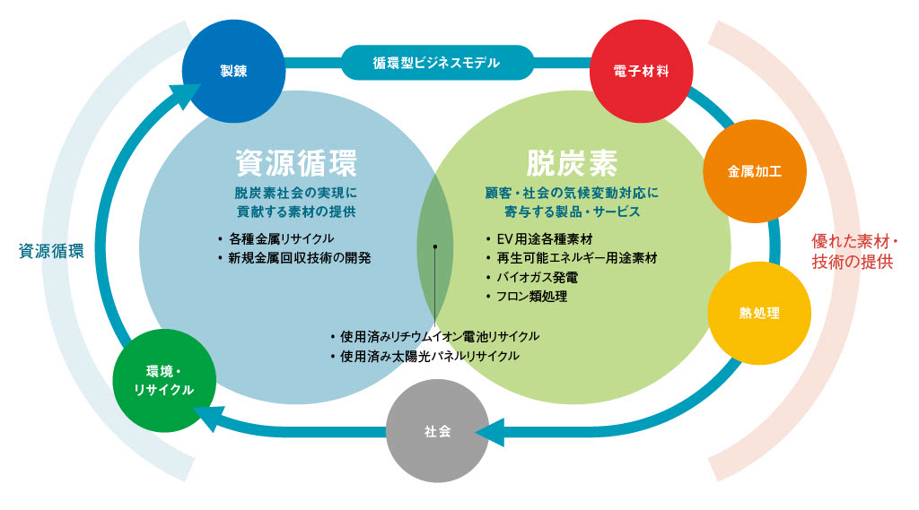 • 第三者認証を取得したリサイクル金属、金属製品 • PVリサイクル、風力発電設備解体・処理 • 使用済みリチウムイオン電池(LIB)リサイクル |