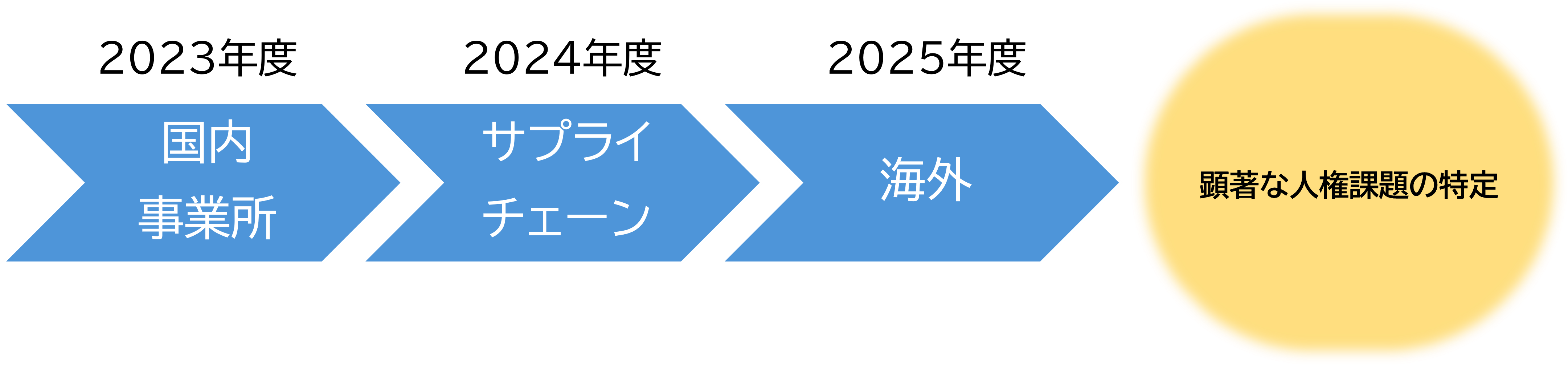 ロードマップでは、2023~2024年度にかけて、顕著な人権課題を特定するために人権に関するリスク評価を実施するとともに、包括的なモニタリング・レビューを行うマネジメント体制を整備します。2025年度以降は、グループマネジメントを本格化し、顕著な人権課題に対応するとともに、バリューチェーンにまで広げた人権対応を推進していきます。